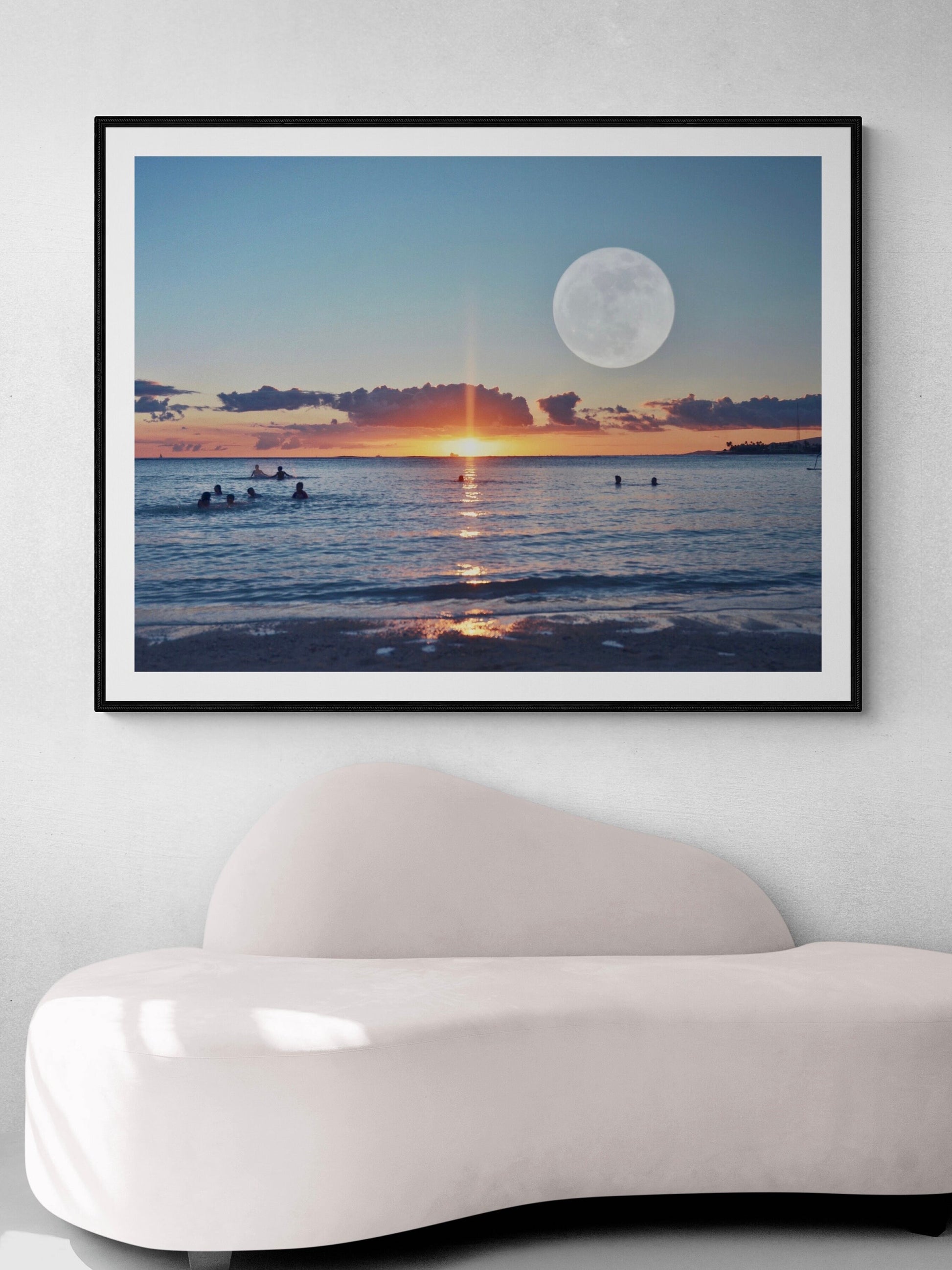 “Full Moon Ocean Sunset ” Fine art photography print taken by Jessica Joy of the coast of Oahu.